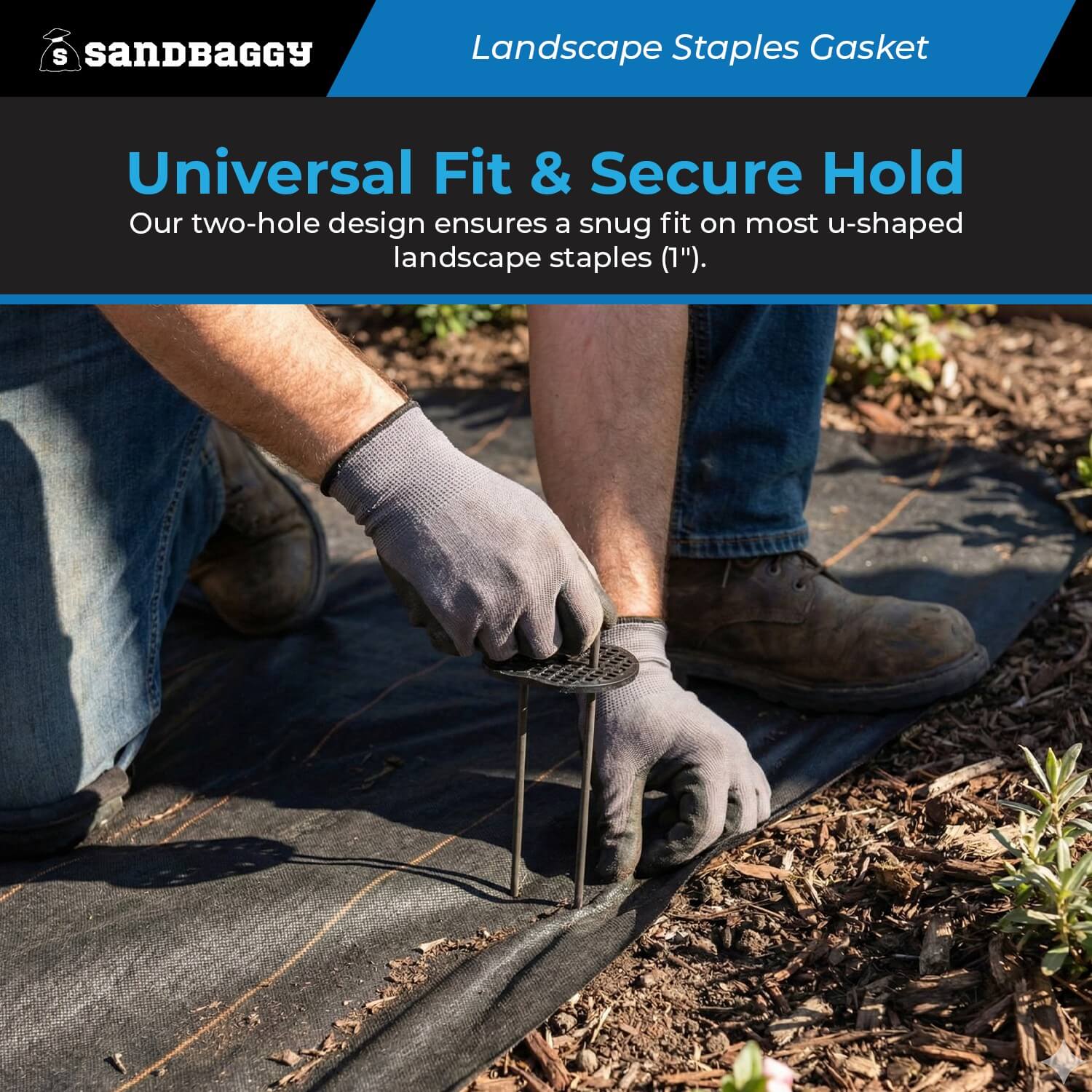 - Prevents Landscape Fabric From Tearing by distributing stress and securing staples in place. Acts as a landscape staples buffer, providing added protection against strong winds.