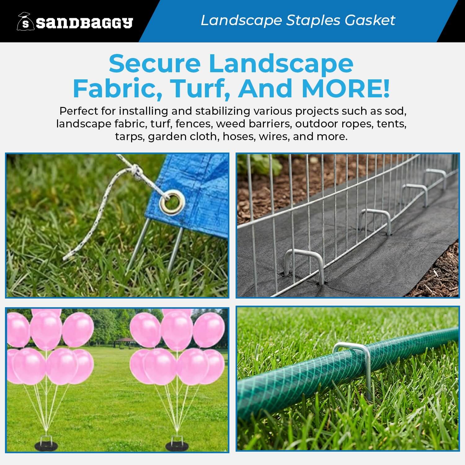- Secure Landscape Fabric, Turf, and MORE! Perfect for installing and stabilizing various projects such as sod, landscape fabric, turf, fences, weed barriers, outdoor ropes, tents, tarps, garden cloth, hoses, wires, and more.