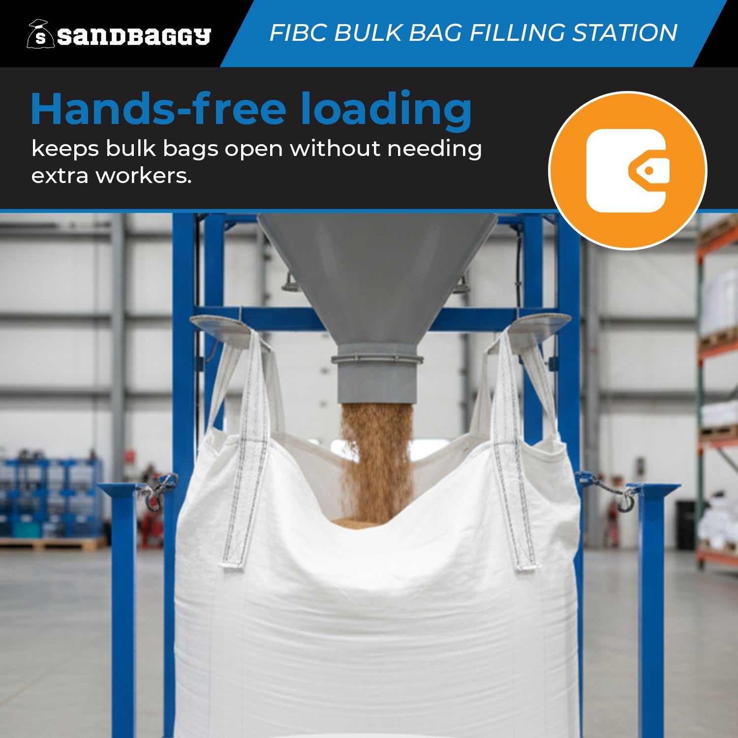 - Hands-free loading — keeps bulk bags open without needing extra workers.