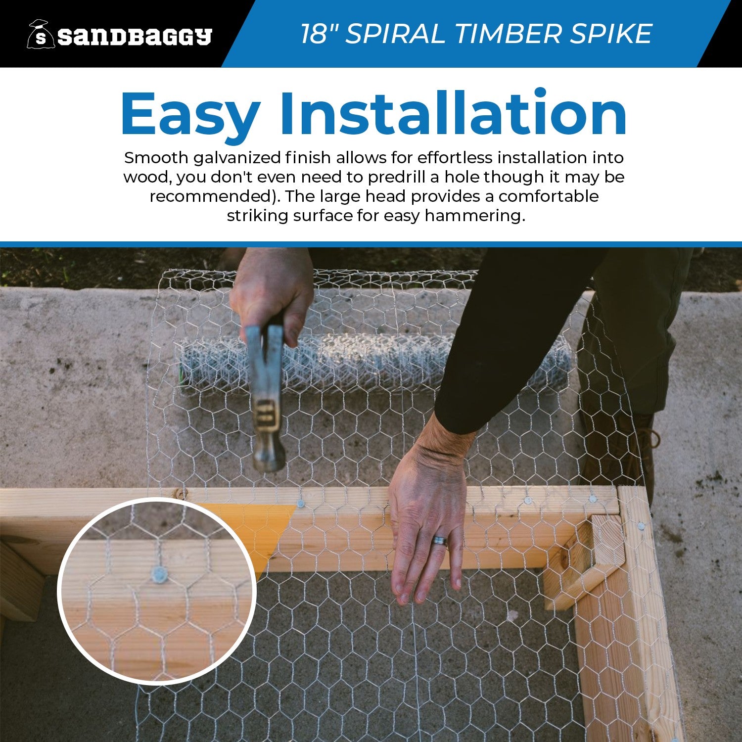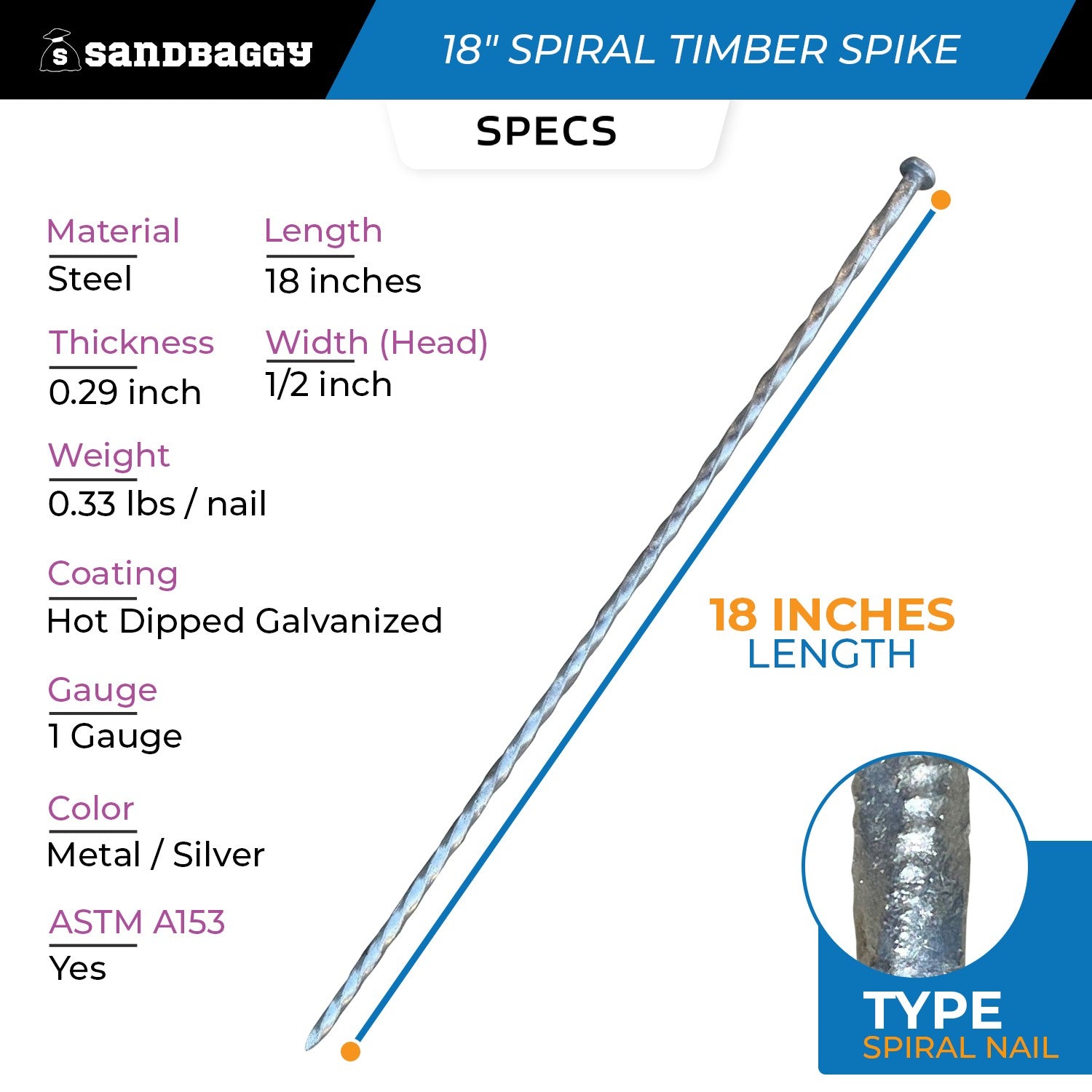 18" Spiral Landscape Timber Spikes - Galvanized Steel Nails - 1 Gauge Steel