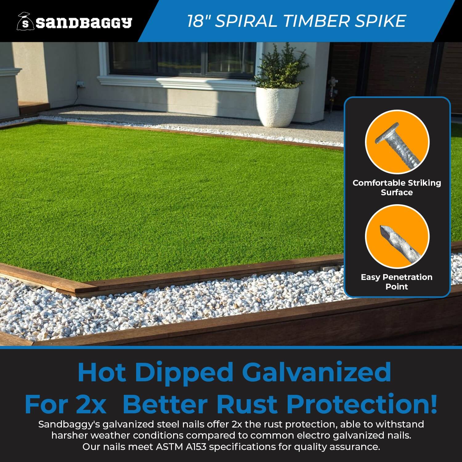 Enhance the strength and durability of your landscaping projects with our 18-inch landscape timber spikes (also known as timber nails) , featuring a sturdy 1-gauge steel construction they're designed to withstand tough applications and are even hot-dipped galvanized (meets ASTM A153) to prevent rust and corrosion, as well as making them compatible with all types of treated lumber.