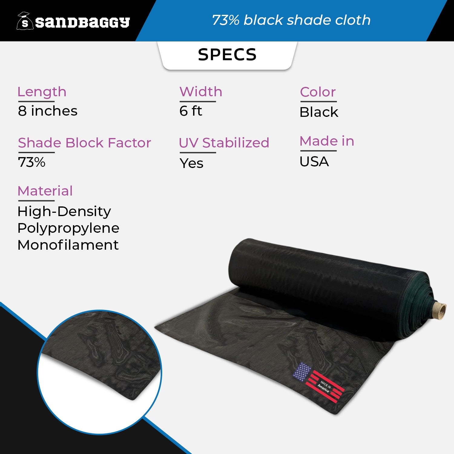 6 ft Wide Black 73% Shade Cloth Roll – Greenhouses, Nurseries & Livestock (USA Made)