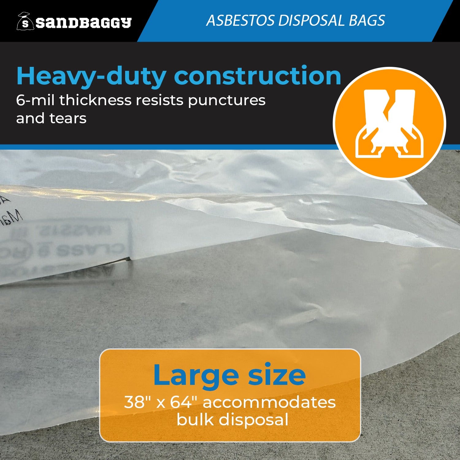 Asbestos Disposal Bags – 38" x 64" Clear Polyethylene, 6 Mil, Made in USA
