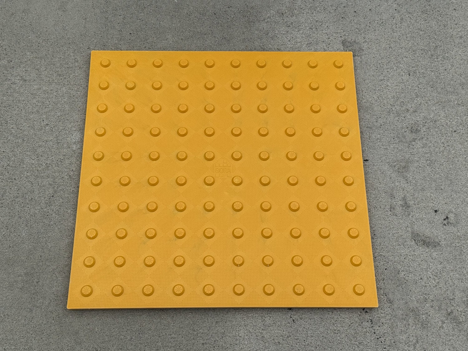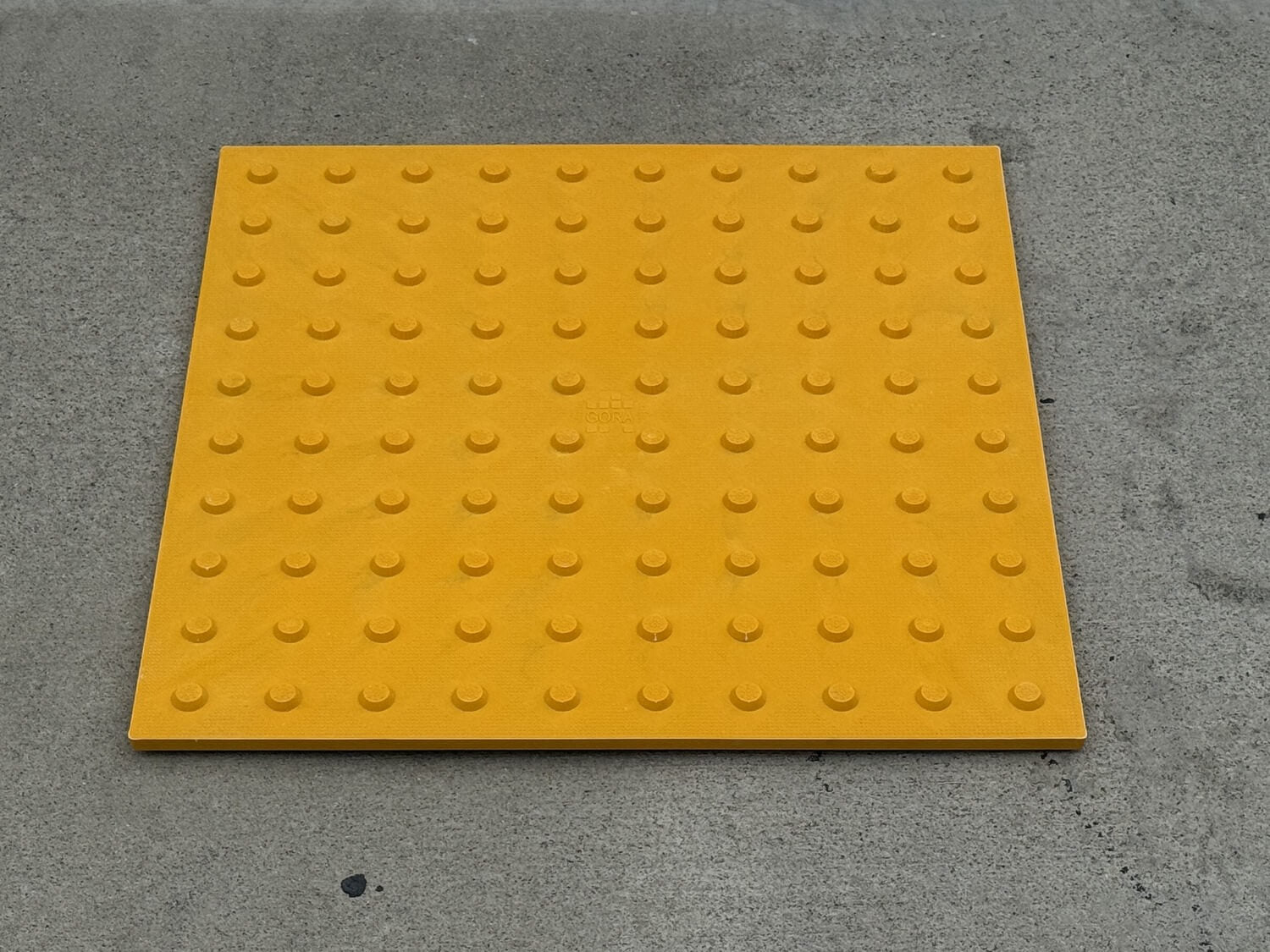 - Set Your Tile: Gently place the ADA tile (film still on!) onto the wet concrete. Using a rubber mallet, tap the tile surface evenly until its flat base is perfectly flush and level with the surrounding concrete. Avoid stepping on the tile to embed it.