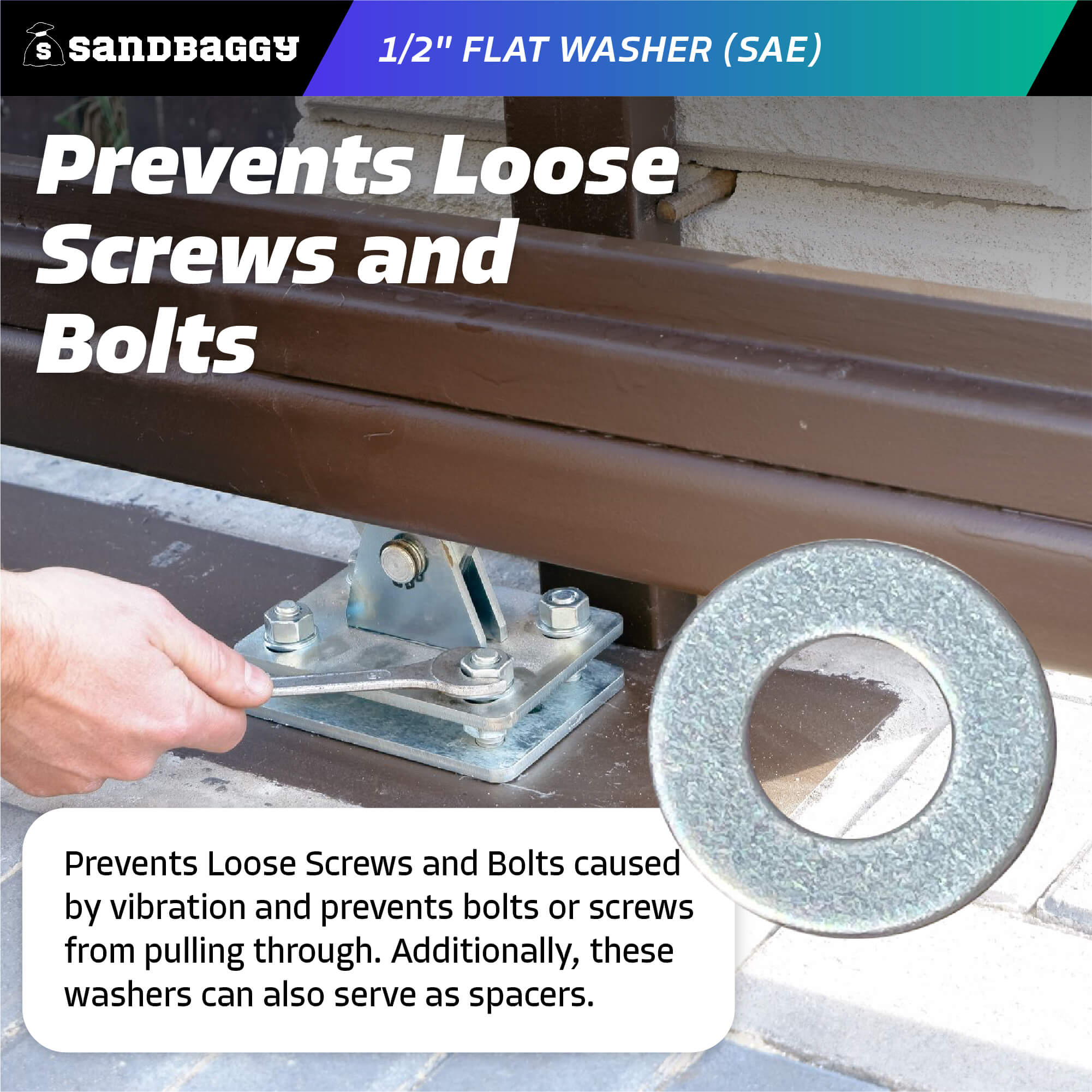 1/2" Flat Washer (SAE) for Screws, Bolts - Galvanized Steel