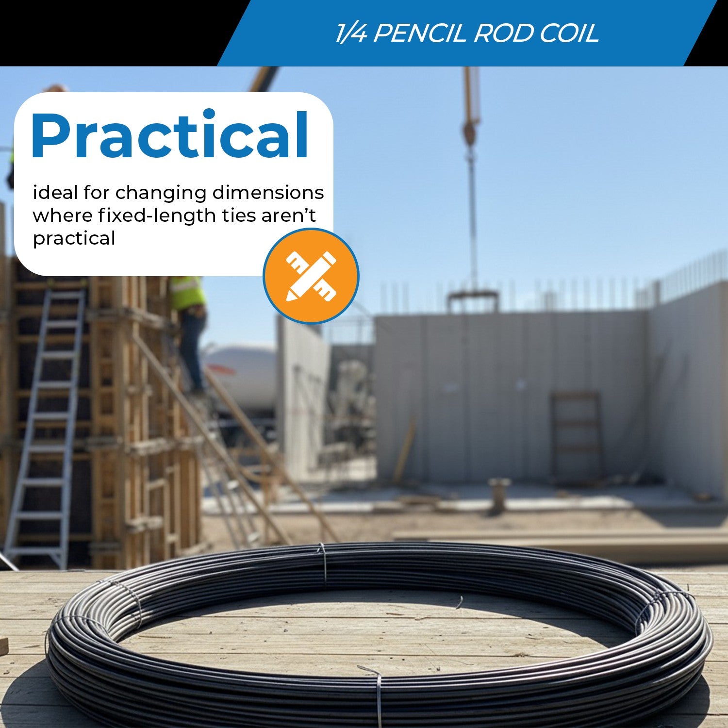 Reliable, Heavy-Duty Pencil Rod for Precise Concrete Forming and On-Site Fabrication