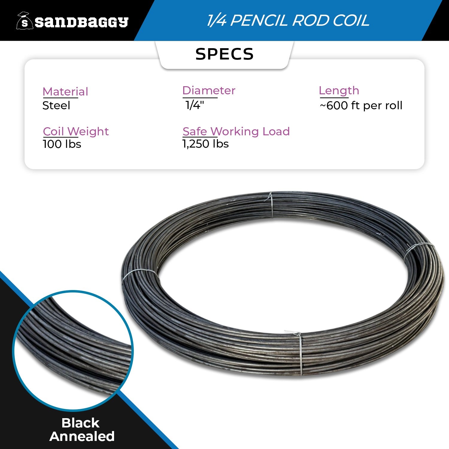 This 1/4" Steel Pencil Rod Coil is a versatile solution for builders, contractors, and metal fabricators. With approximately 600 ft per roll of black annealed wire, it provides strength, flexibility, and ease of use for a variety of concrete forming and bracing applications. The smooth, straight finish allows for quick cutting, bending, and welding directly on-site or in the shop.