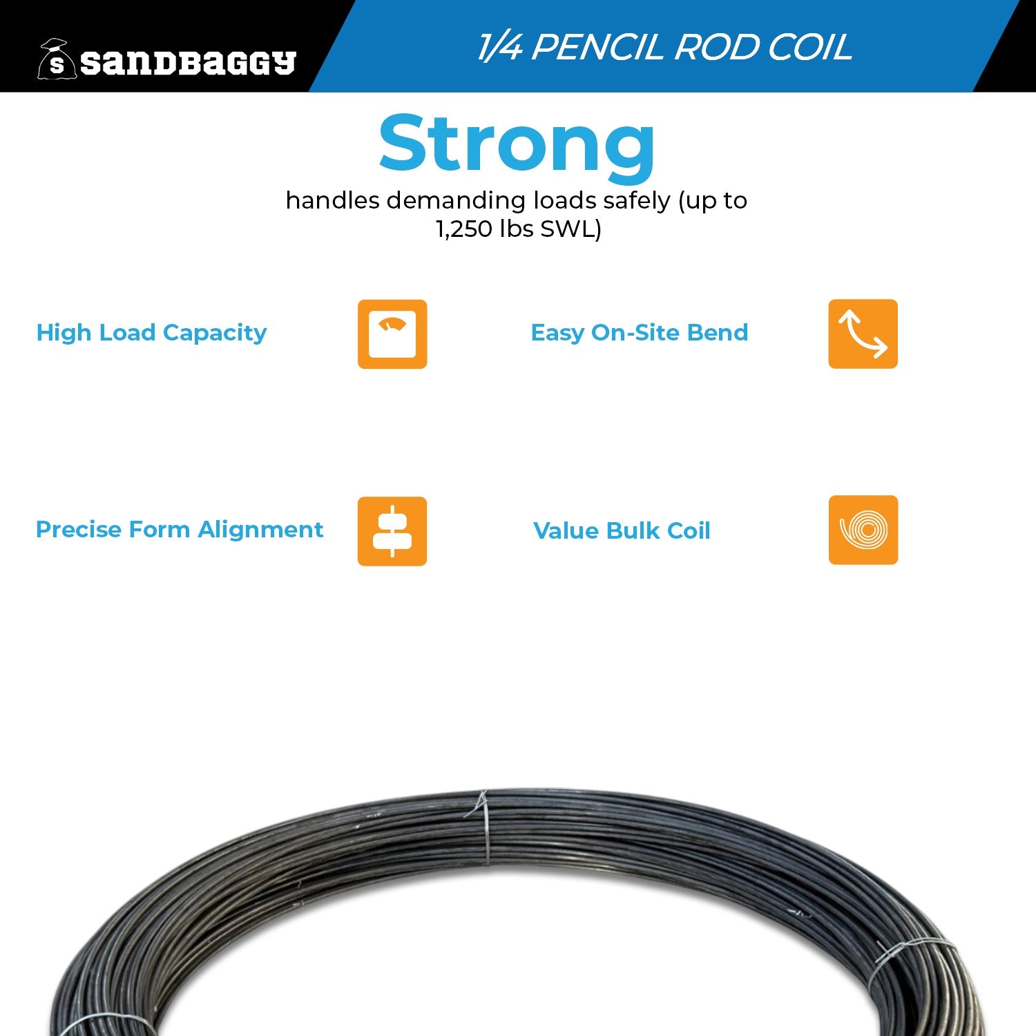 1/4" Steel Pencil Rod – 600 ft Coil for Concrete Forming