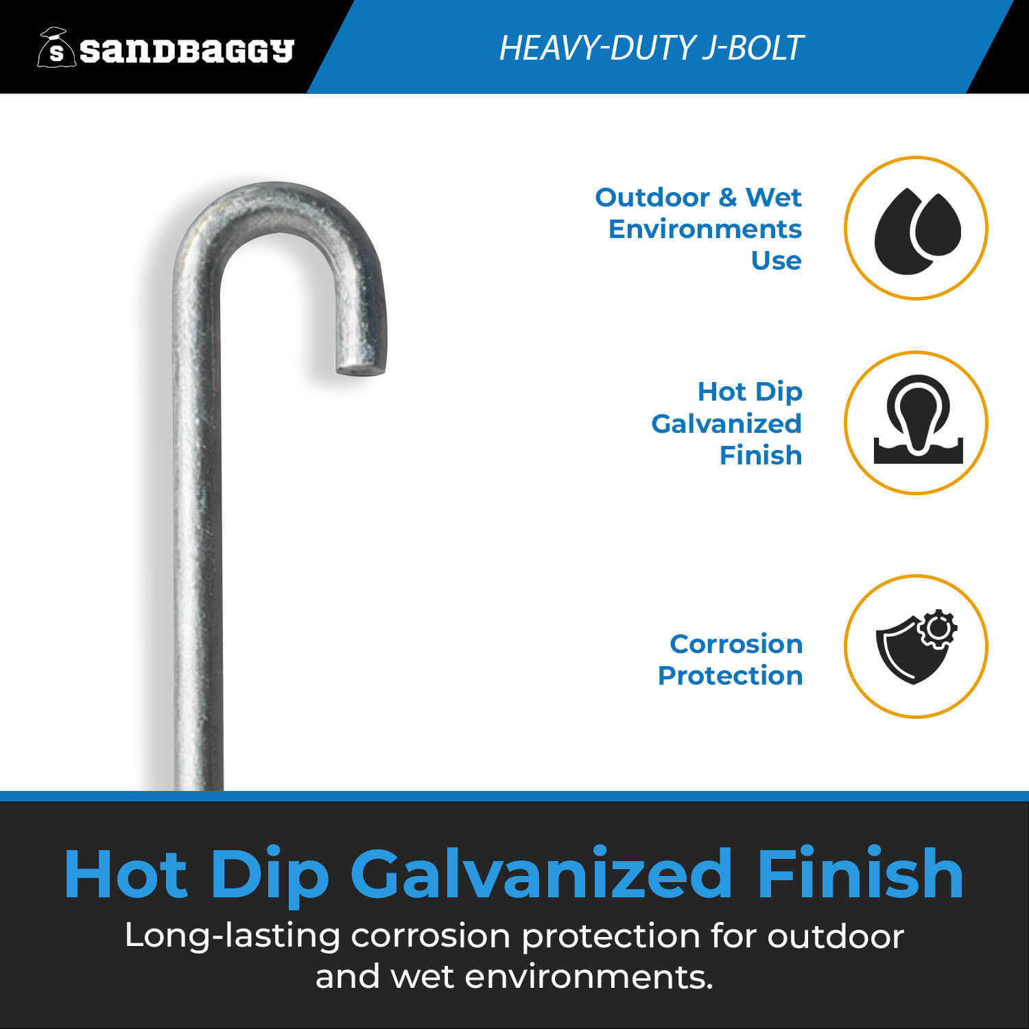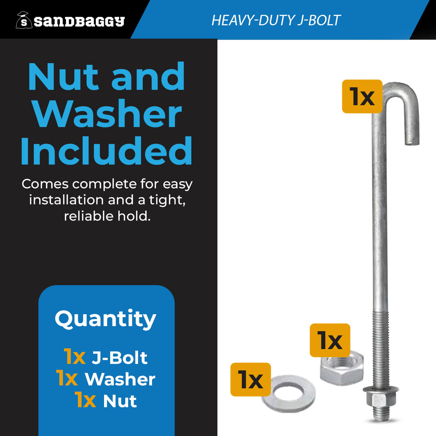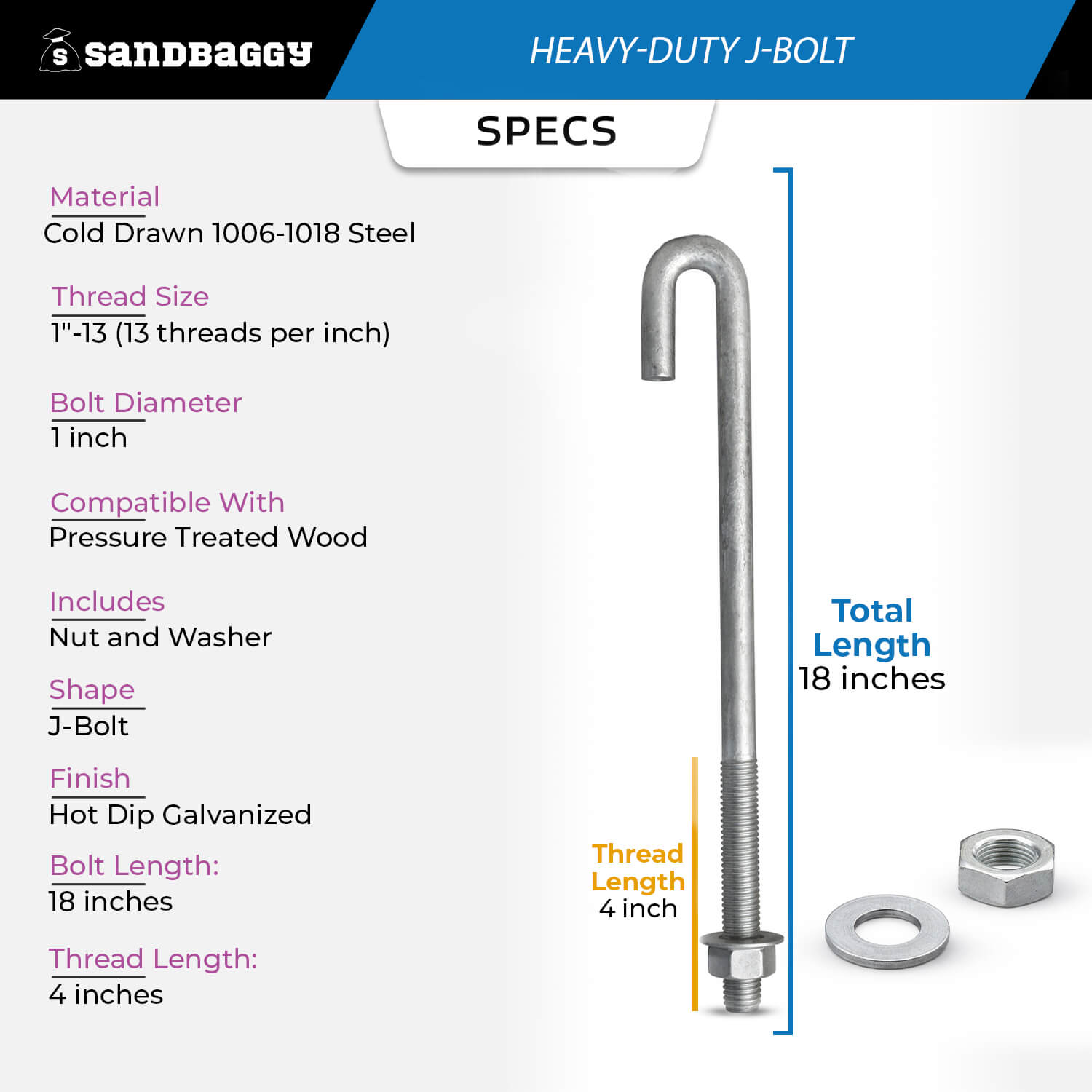 1" x 18" Galvanized Threaded J-Bolt Concrete Anchor (Nut & Washer Included)
