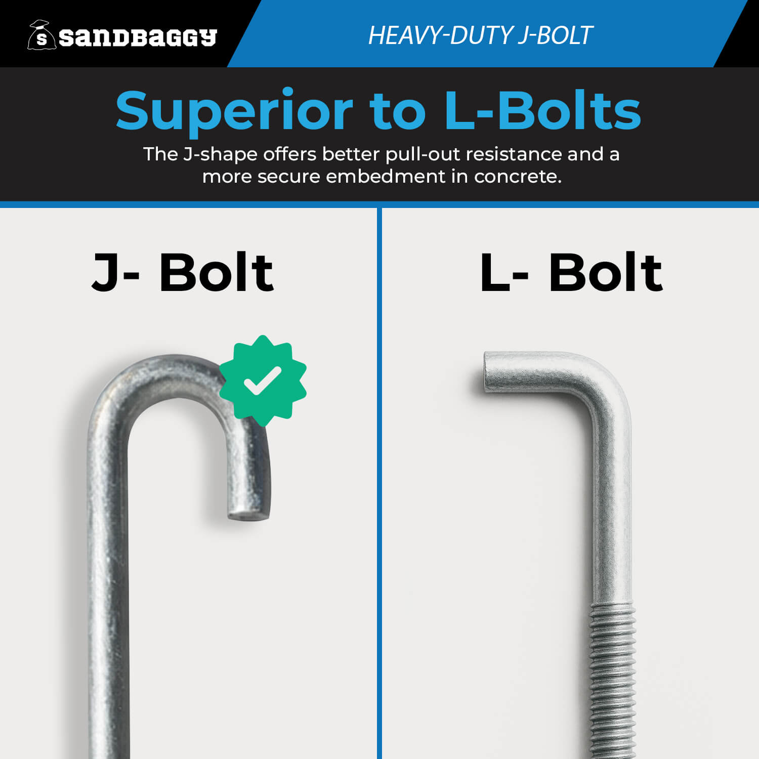 - Superior to L-Bolts – The J-shape offers better pull-out resistance and a more secure embedment in concrete.
