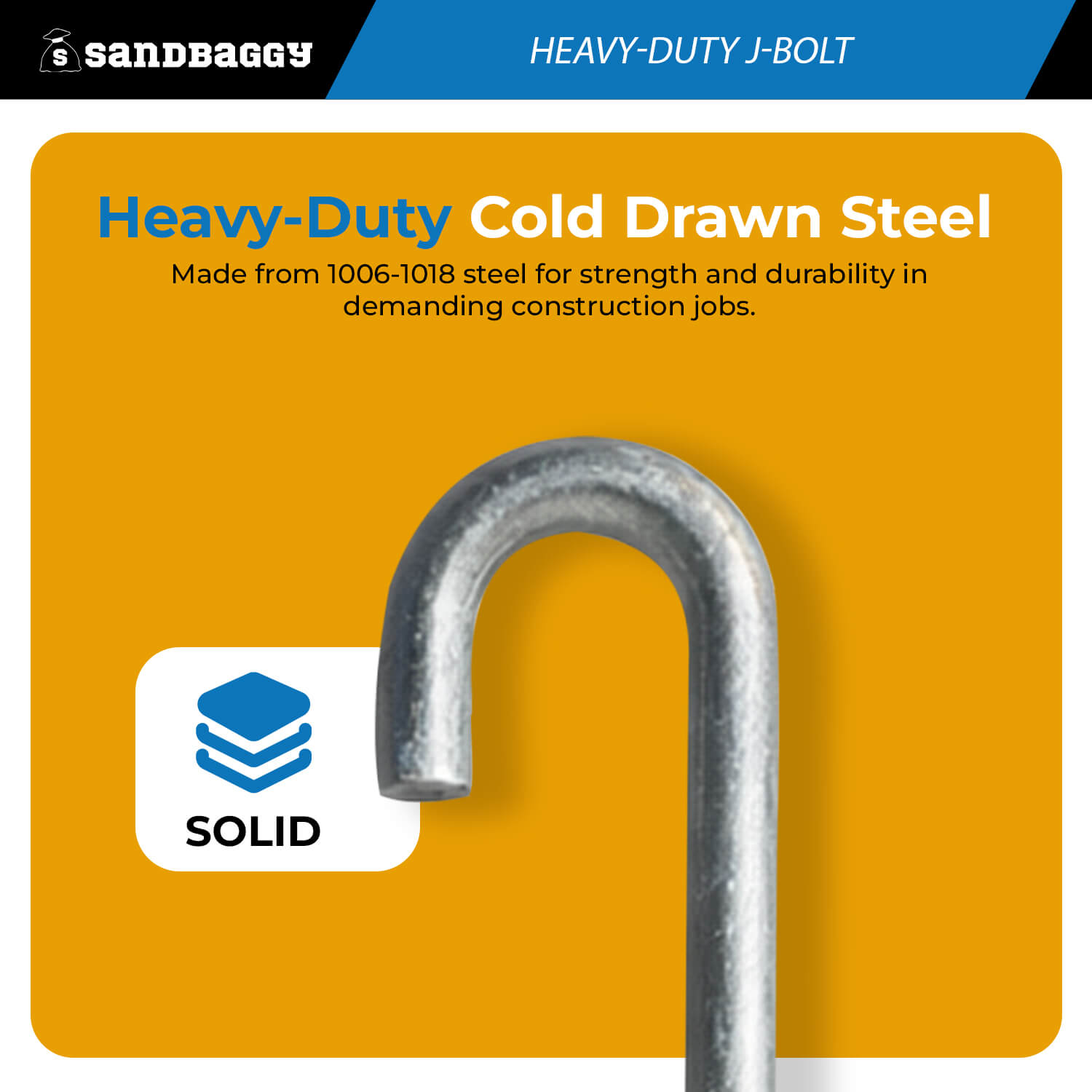 Secure your structures with confidence using the 1" x 18" Galvanized Threaded J-Bolt Concrete Anchor (also known as j hook anchor bolts) Manufactured from cold drawn 1006-1018 steel and finished with a hot dip galvanized coating, these J-bolts are built to withstand harsh environments and resist corrosion—making them perfect for outdoor and high-moisture applications.