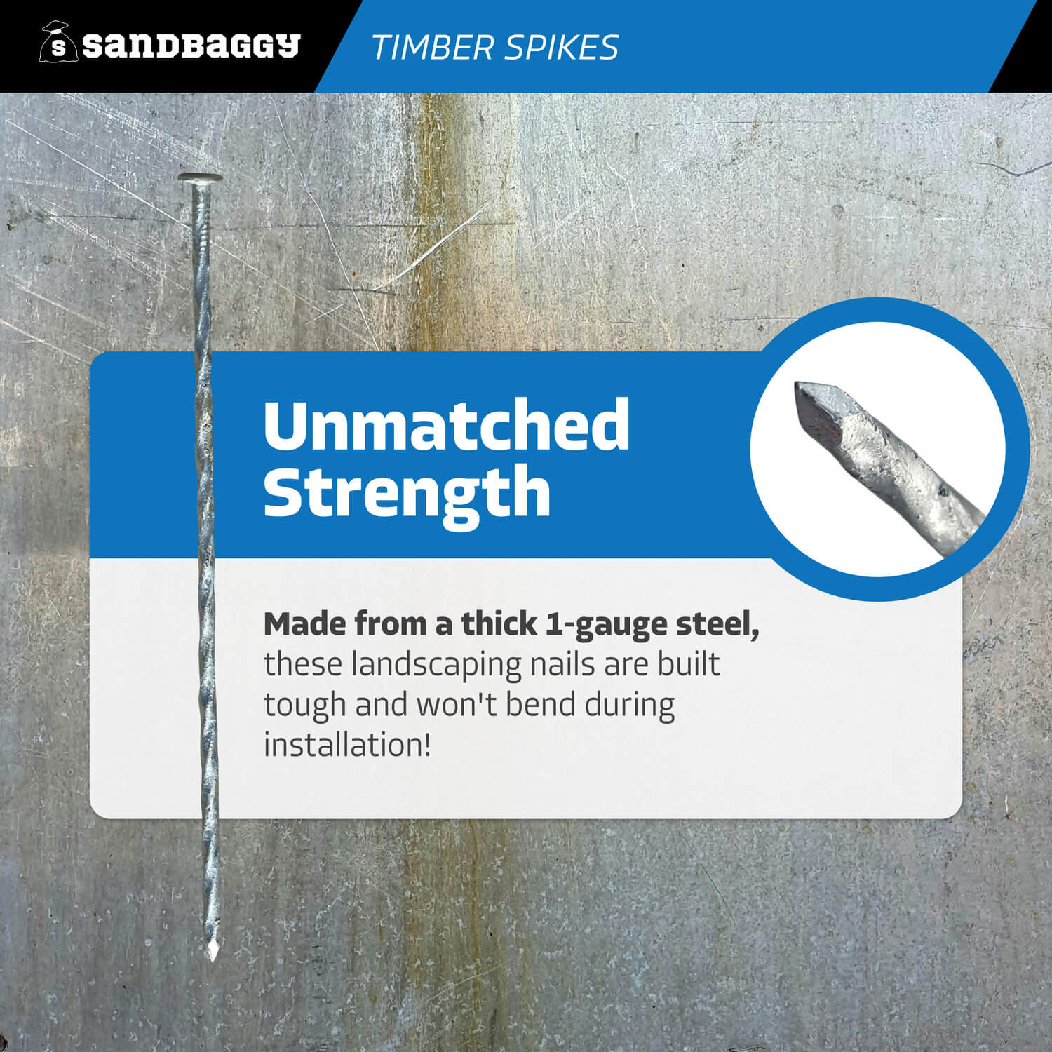 Enhance the strength and durability of your landscaping projects with our 12-inch landscape timber spikes (also known as timber nails) , featuring a sturdy 1-gauge steel construction they're designed to withstand tough applications and are even hot-dipped galvanized (meets ASTM A153) to prevent rust and corrosion, as well as making them compatible with all types of treated lumber.