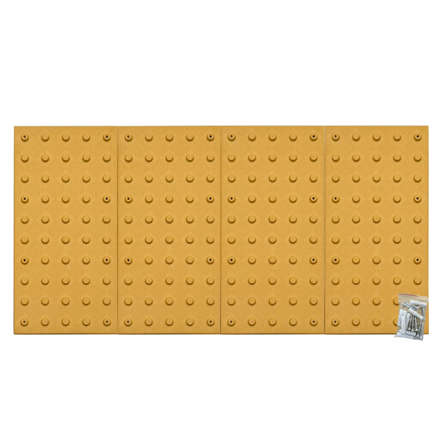 - Assembled Size 24" x 48" (approx.) – Comes as a 4-piece set (each 12" x 24") that fits together to form one full ADA warning pad. Final assembled size may be 1–2 inches shorter than listed.