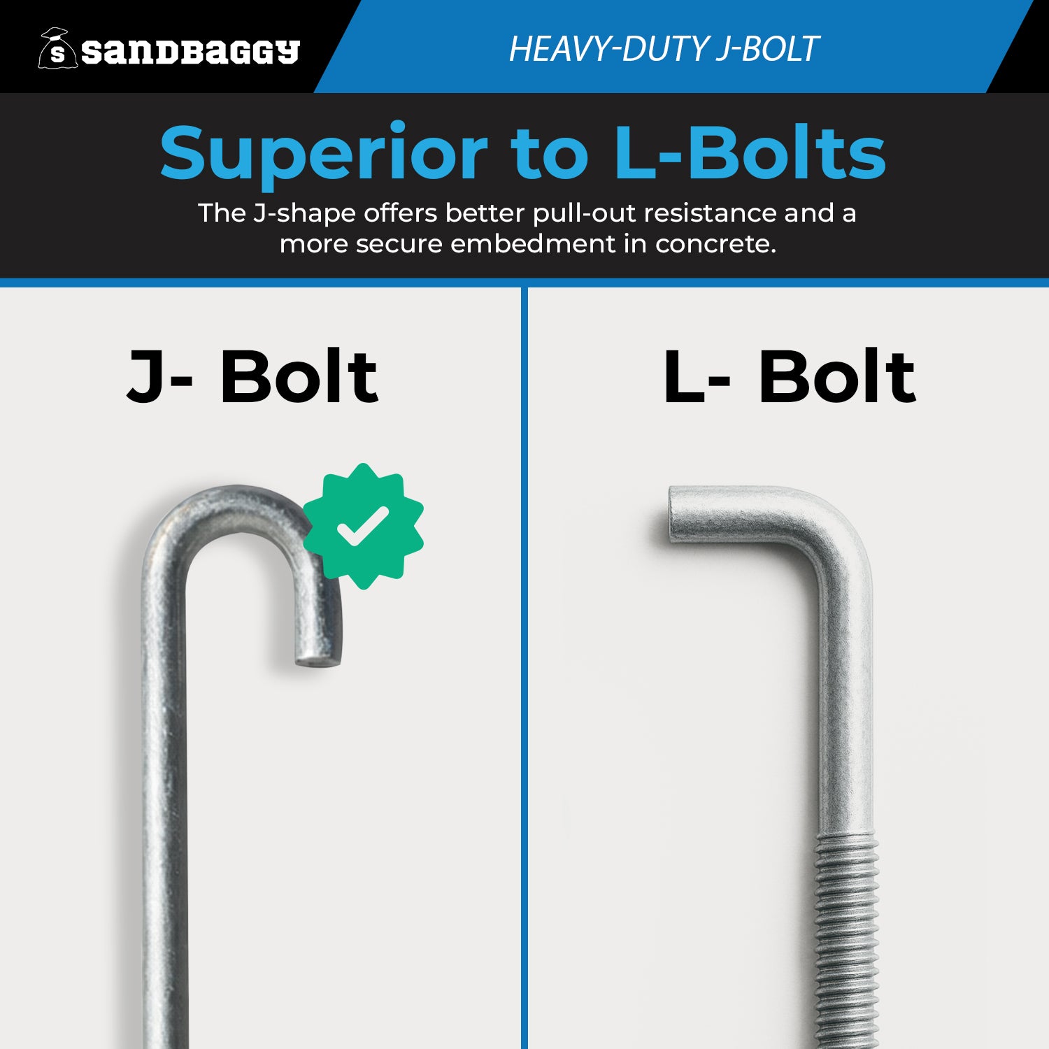 - Superior to L-Bolts – The J-shape offers better pull-out resistance and a more secure embedment in concrete.