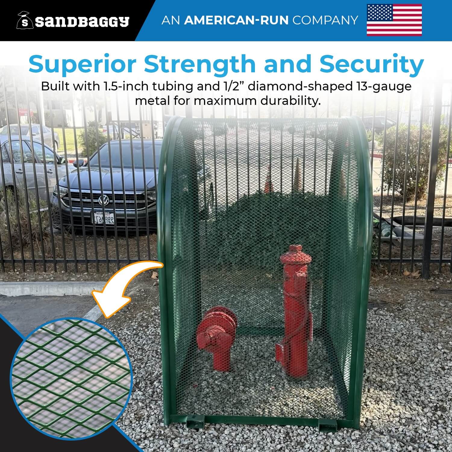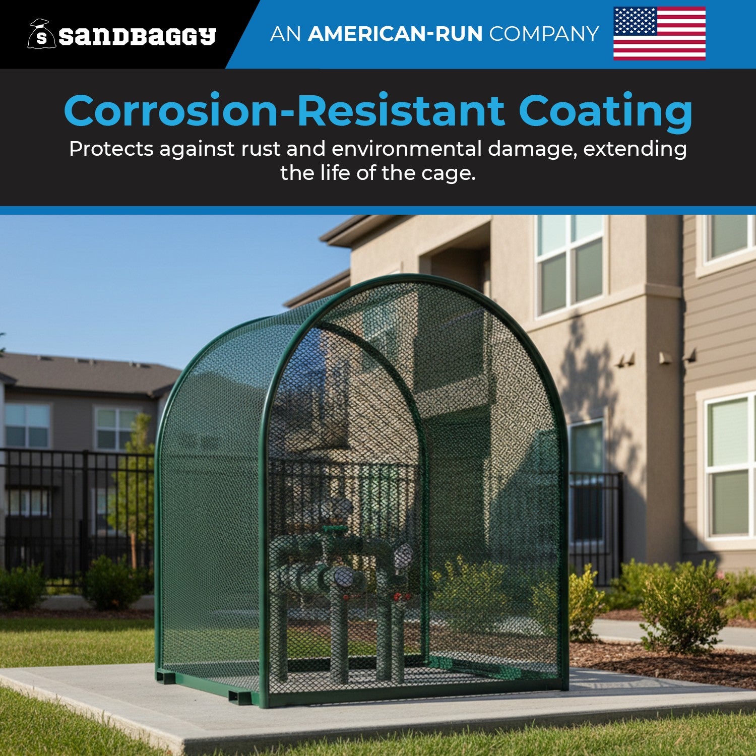 Our cage for backflow preventer features 1.5-inch tubing and 1/2” diamond-shaped 13-gauge metal, providing enhanced structural integrity. Finished with a high-quality coating, it offers superior corrosion resistance, allowing it to perform reliably in outdoor environments. Ideal for securing backflow devices in a range of residential, commercial, or industrial applications.