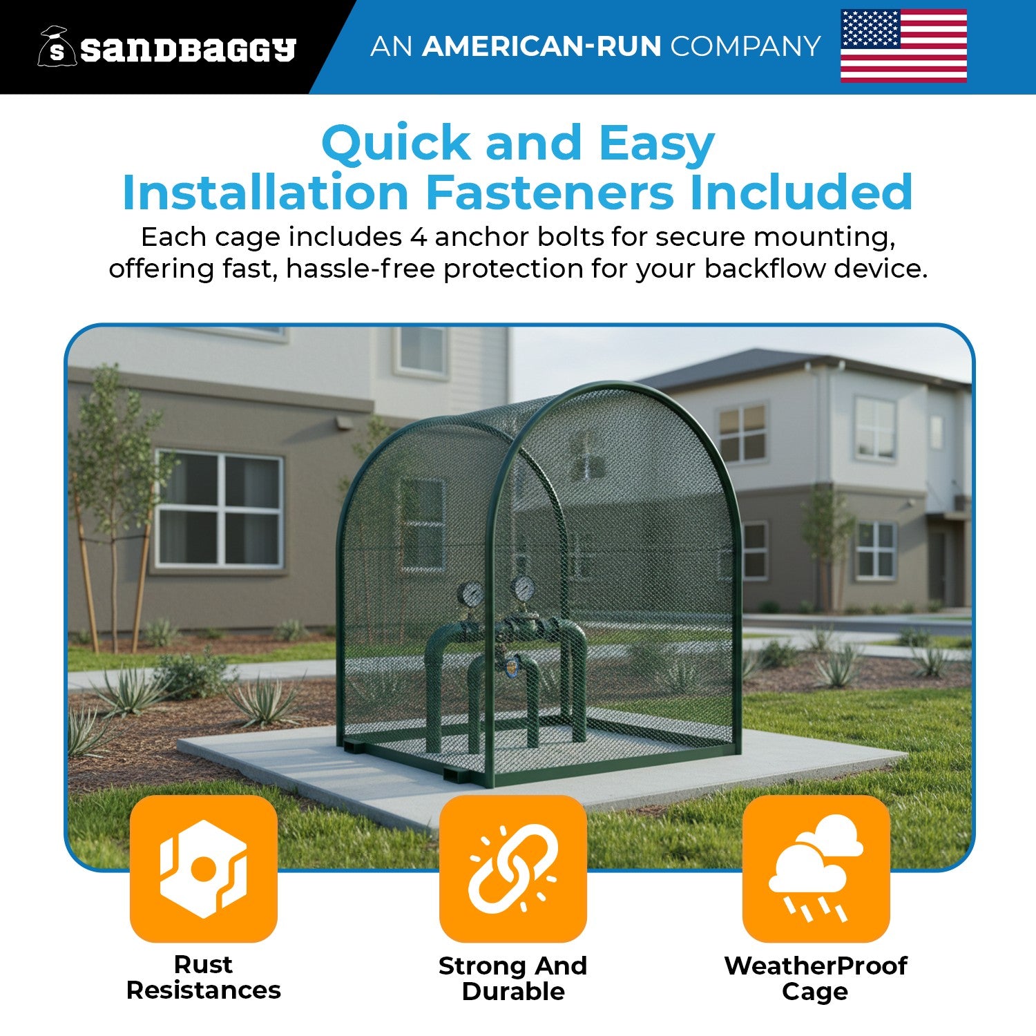 - Quick and Easy Installation – Fasteners Included: Each cage includes 4 anchor bolts for secure mounting, offering fast, hassle-free protection for your backflow device.