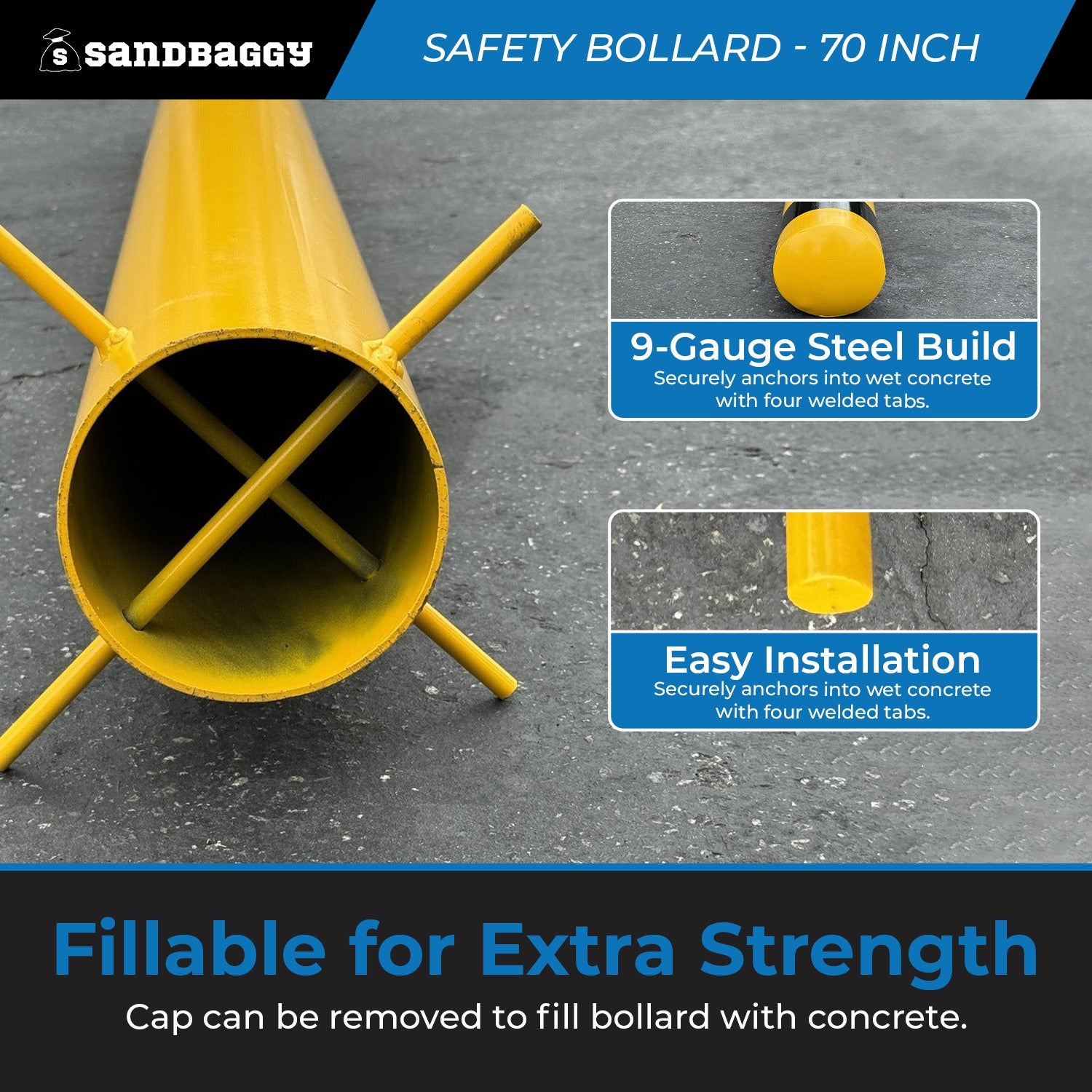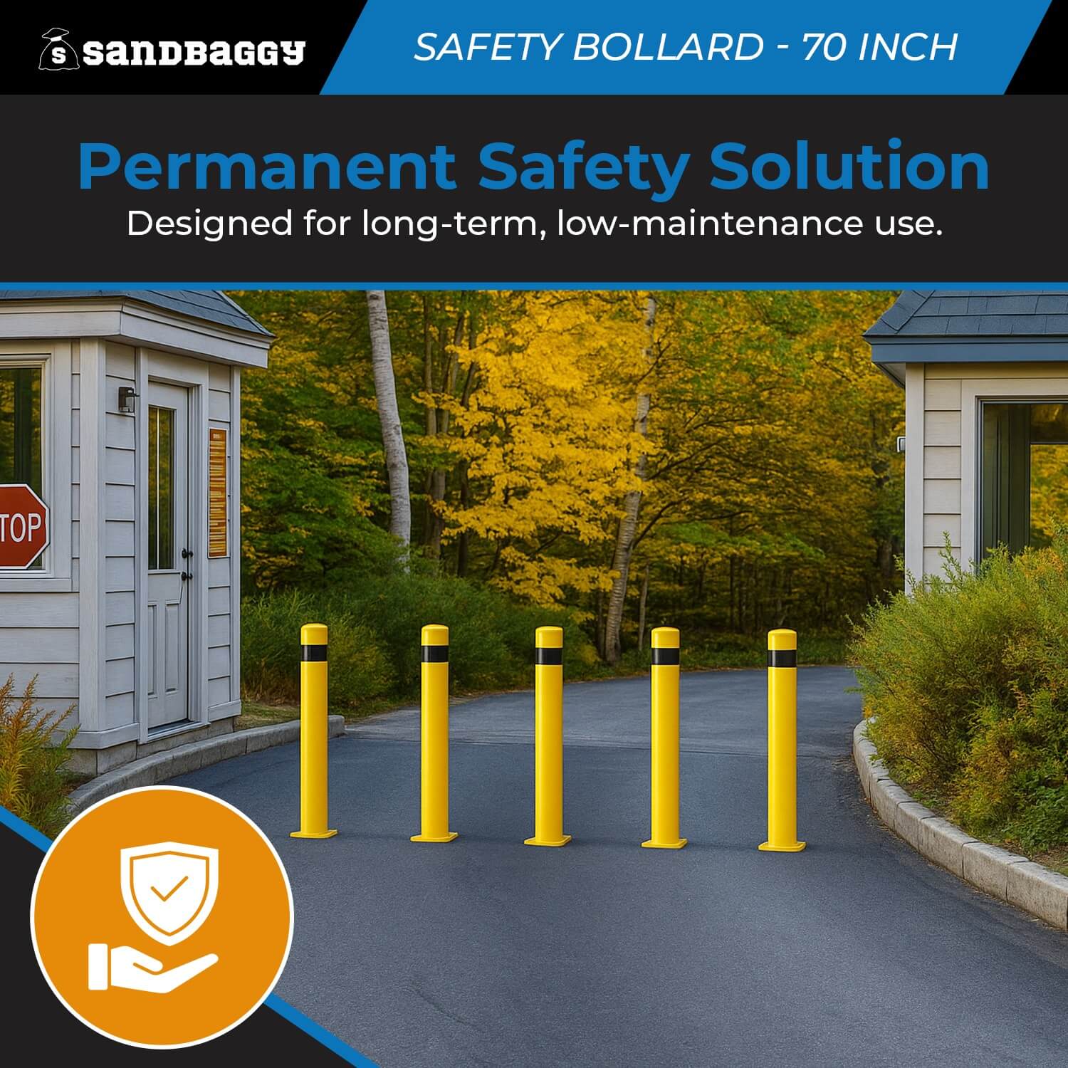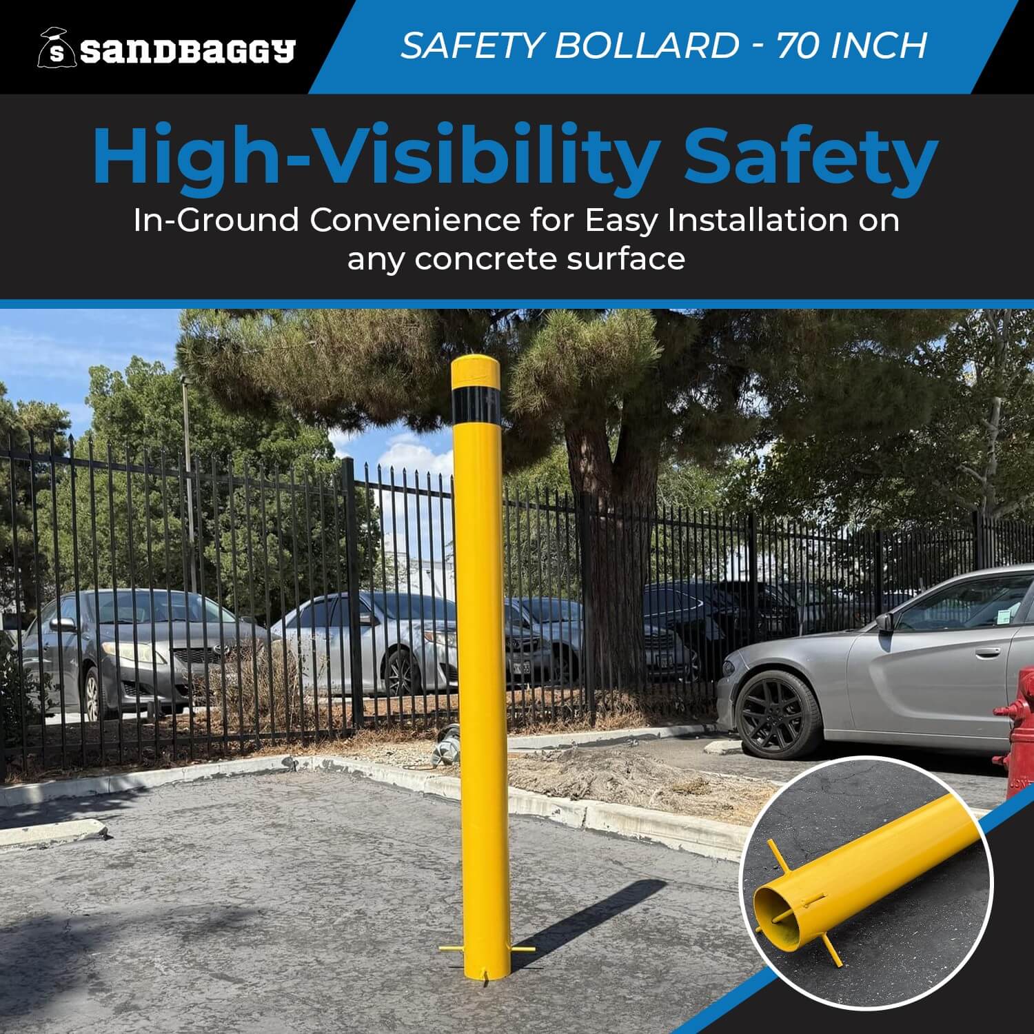 70" Steel Pipe Safety Bollard – In Ground Protection Post (Yellow)