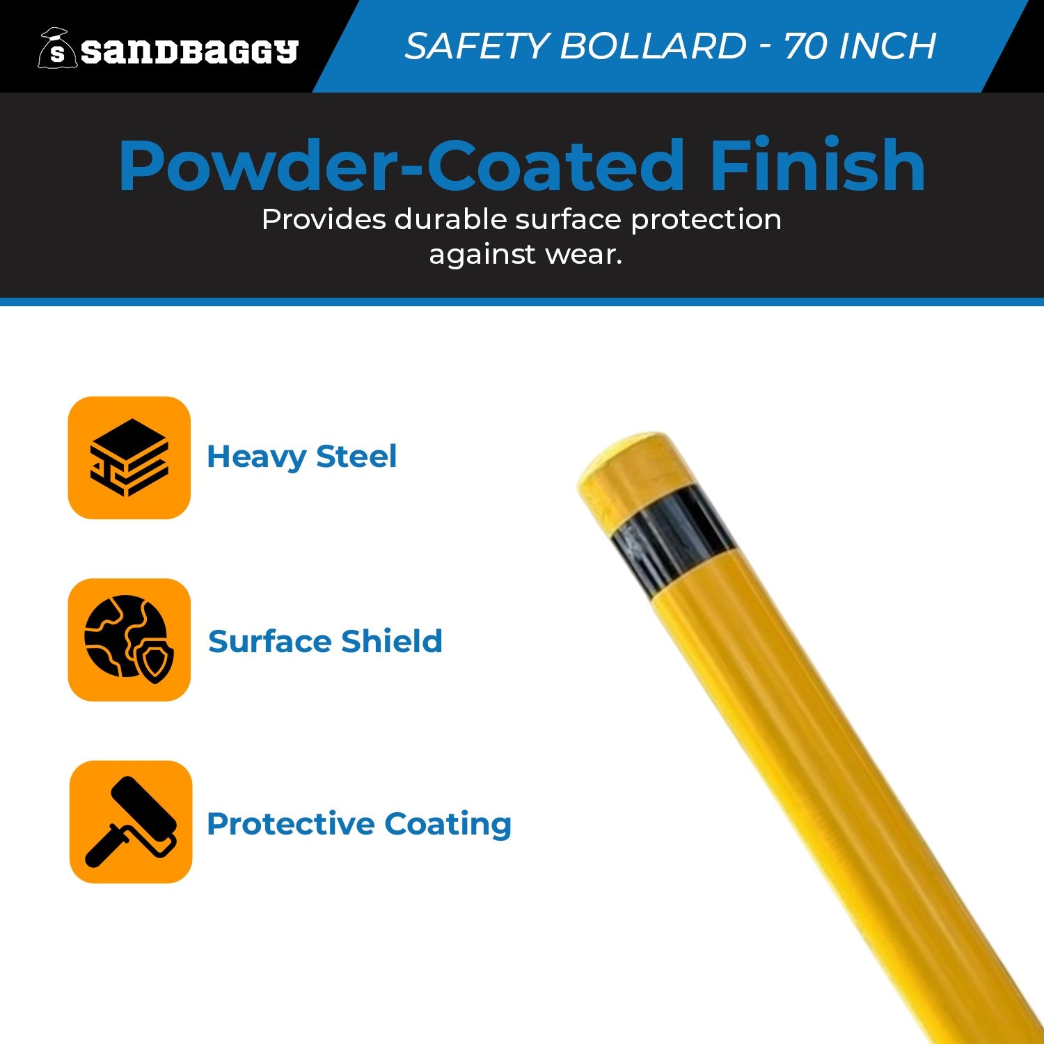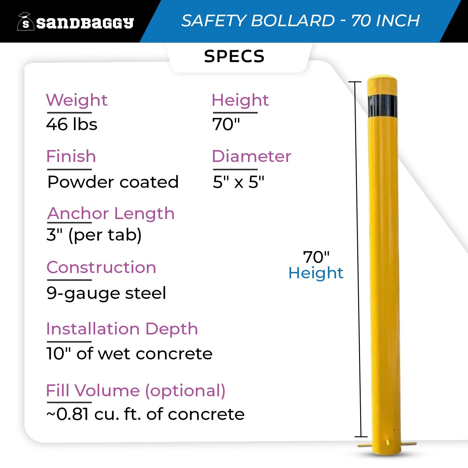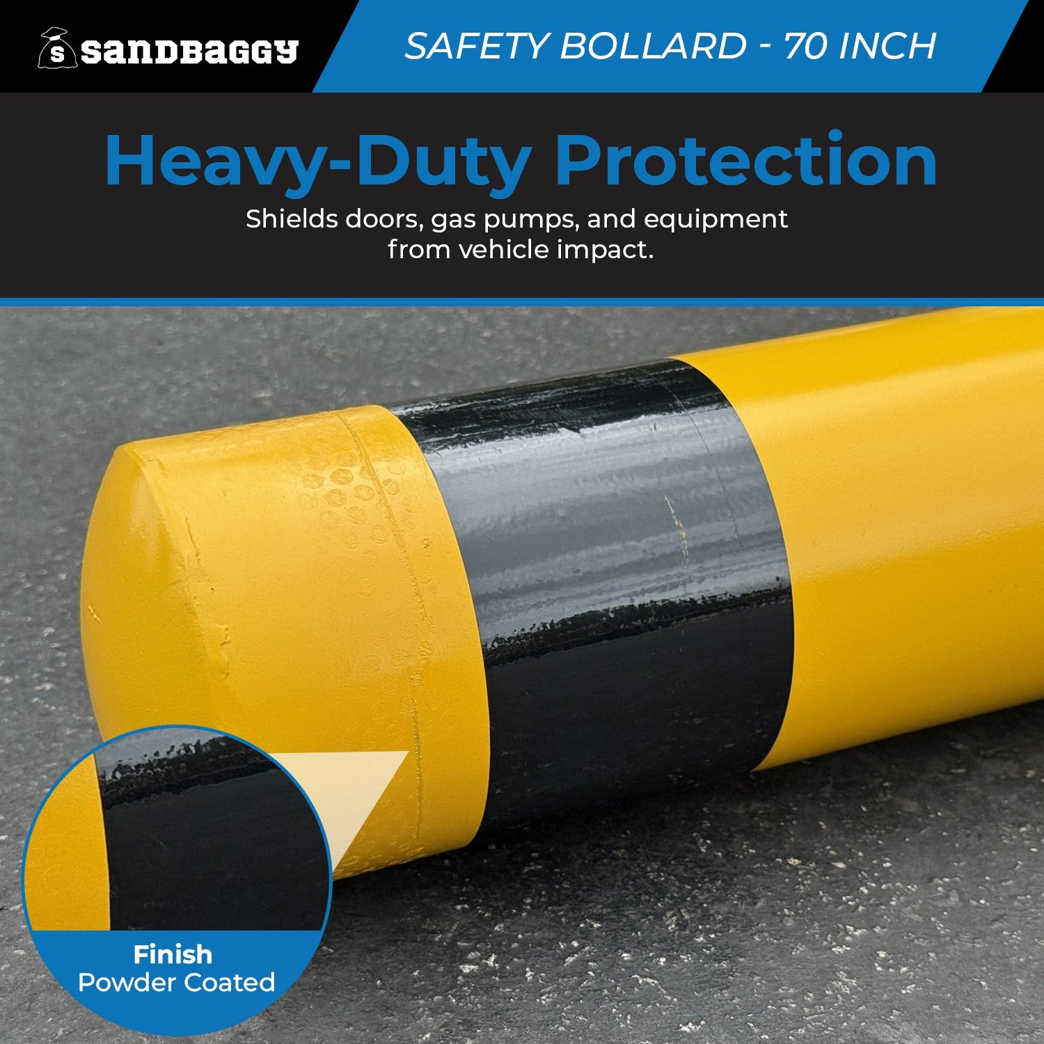 Protect your facilities, dock doors, gas stations, and high-traffic areas with this heavy-duty 70" steel pipe safety bollard. Built from 9-gauge steel with a durable powder-coated finish, it’s designed for long-term impact protection and security.