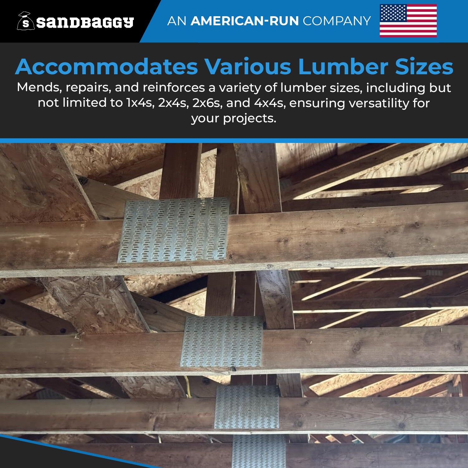 - Accommodates Various Lumber Sizes: Mends, repairs, and reinforces a variety of lumber sizes, including but not limited to 1x4s, 2x4s, 2x6s, and 4x4s, ensuring versatility for your projects.