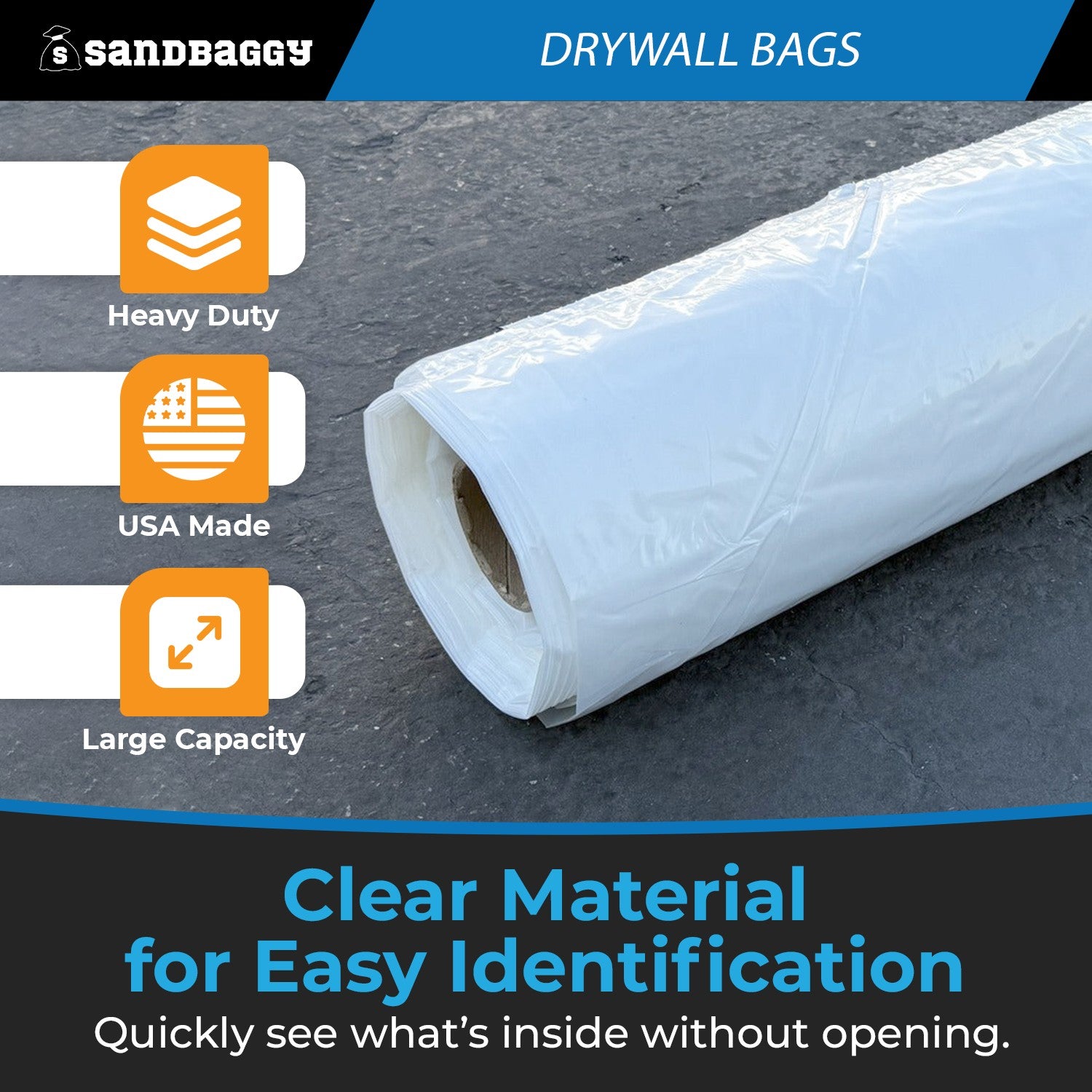 Clear Drywall Bags – 60 CF, 2 Mil Thick Plastic, USA Made