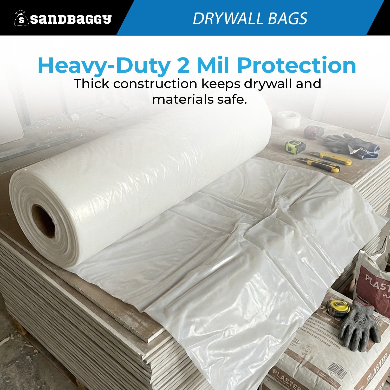 - Heavy-Duty 2 Mil Protection – Thick construction keeps drywall and materials safe.