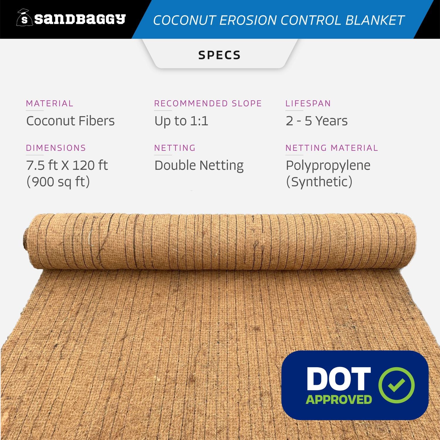 - Stabilize Steep Slopes (1:1) & Hills: Suitable for steep 1:1 slopes! Sandbaggy coconut erosion control blankets provide a strong physical barrier against erosion while also allowing for moisture and nutrient retention in the soil.
