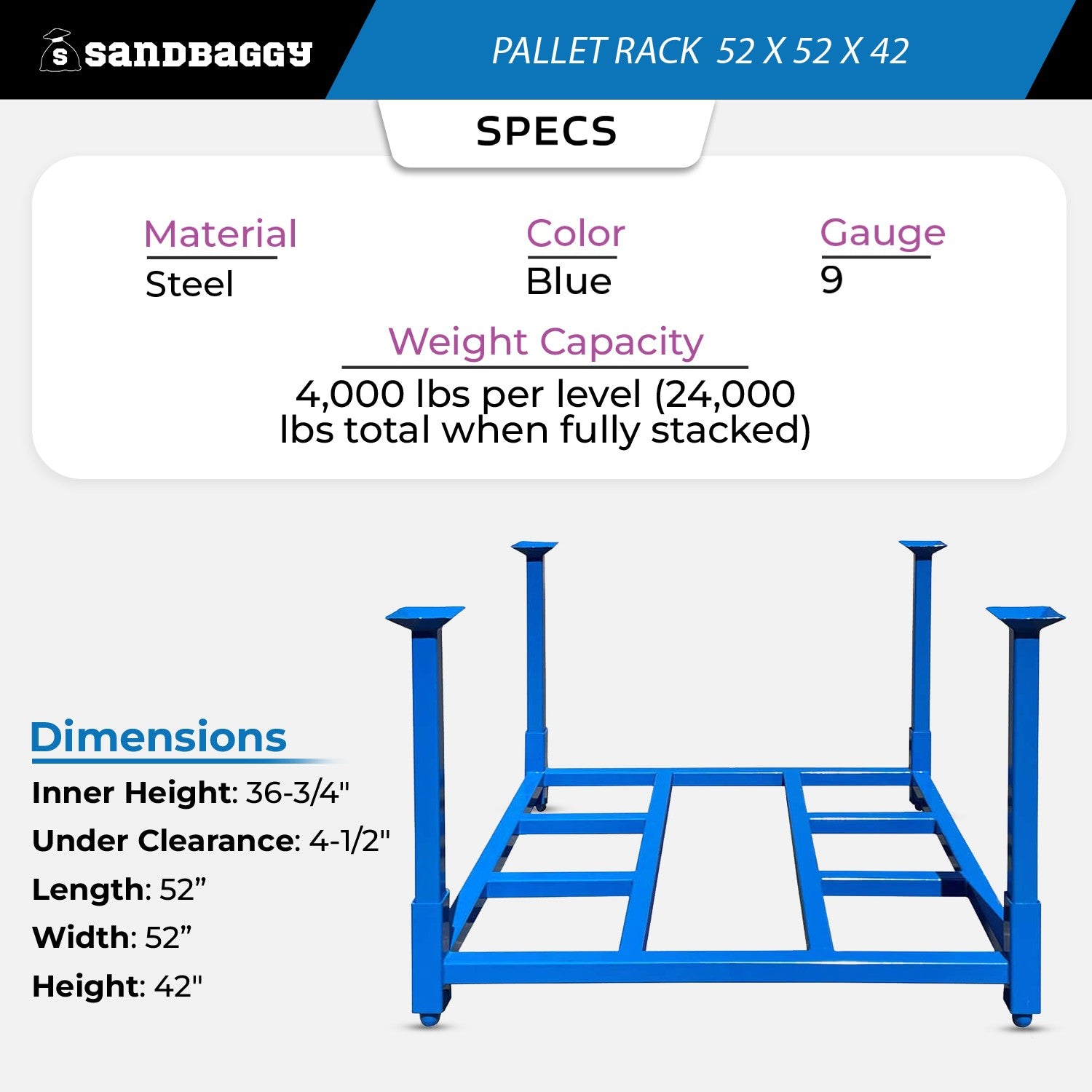 Heavy-Duty Stackable Pallet Racks - 52” x 52” x 42” | Powder-Coated Steel