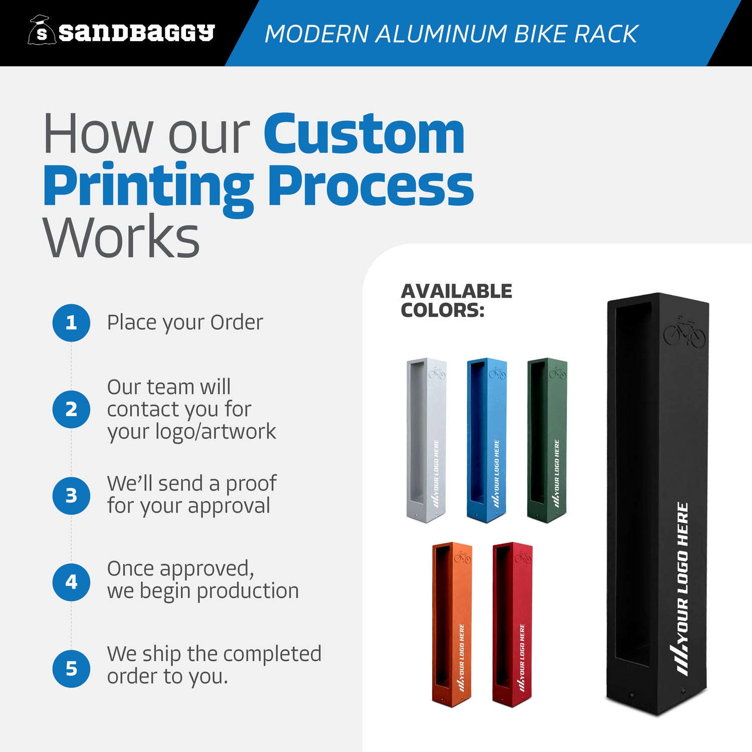 Custom Printed Logo Modern Aluminum Bike Rack | Commercial, Dual Capacity, Surface Mount (5”x4”x34”)