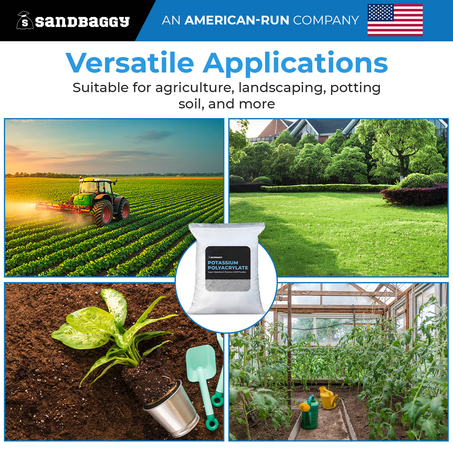 Ideal for gardens, potted plants, lawns, and agricultural soil conditioning, potassium polyacrylate also helps retain nutrients in the soil, keeping them available to plants longer. When used properly, it is non-toxic to humans and animals and supports improved drought resistance in a wide range of applications.