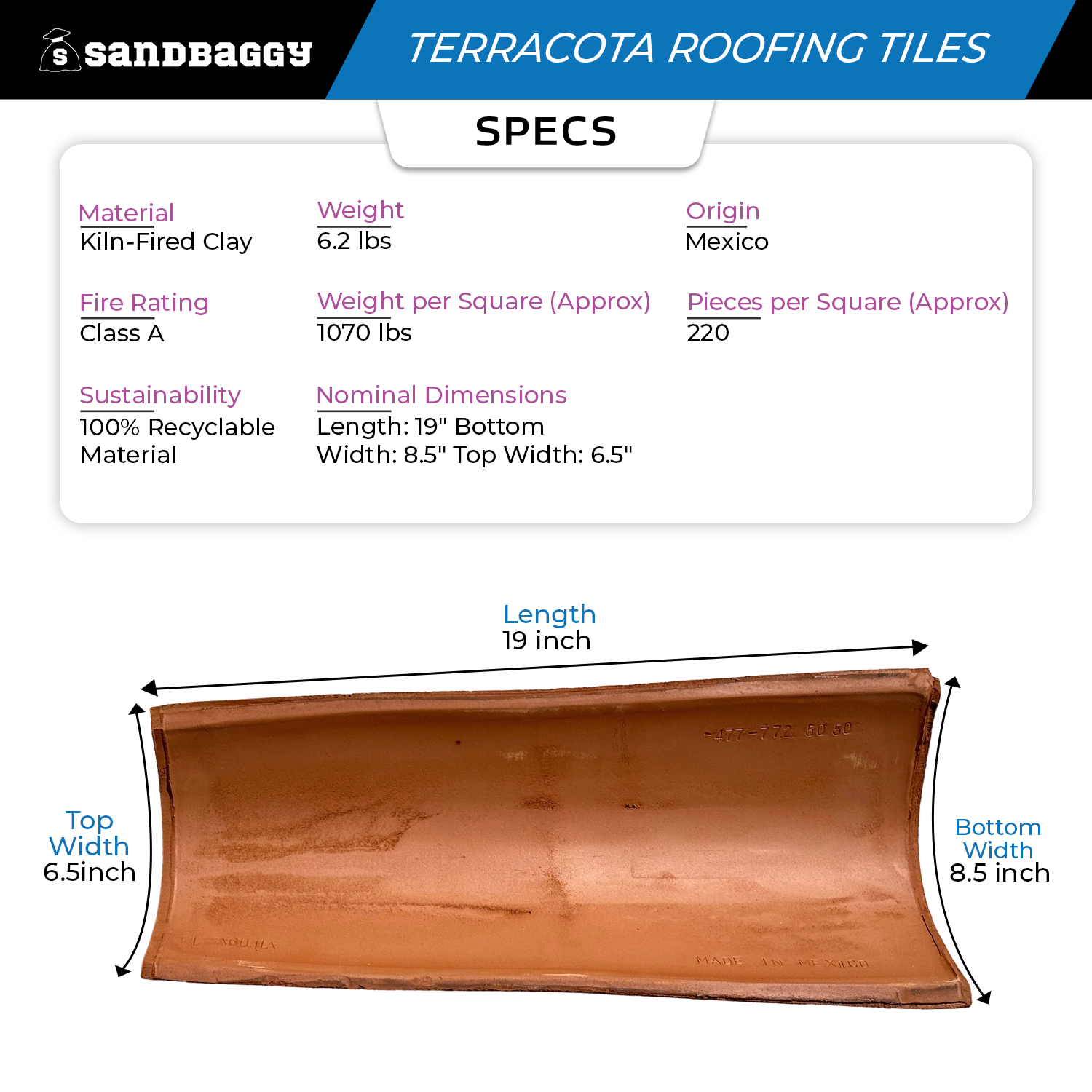- Style: Two-Piece, High-Barrel, Small-Profile Spanish Tile