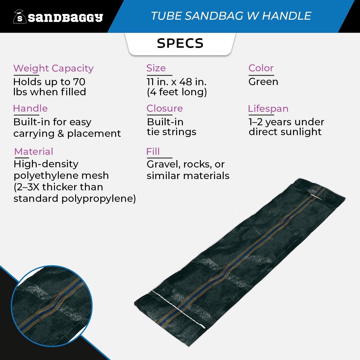 Long Tube Sandbags with Handle - 4 ft length (Lasts 1-2 Yrs) - 70 lb Capacity
